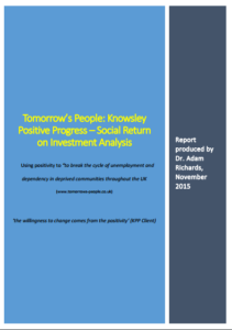 “This report provides an outline of the Social Return on Investment (SROI) analysis conducted to evaluate Knowsley Positive Progress (KPP), funded by the Big Lottery’s Reaching Communities Fund and managed and operated by Tomorrow’s People. Interviews and focus groups with key stakeholders have informed the analysis that employs the principles of the SROI framework to […]