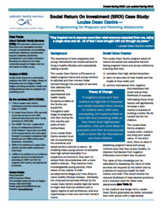 Louise Dean Centre Programming for Pregnant and Parenting Adolescents SROI Case Study